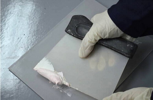 根據(jù)所取原子灰的量,按照其與固化劑的比例為100:2或100:3加入固化劑,加入固化劑前,必須對(duì)固化劑進(jìn)行攪拌(碾壓固化劑瓶身即可)。