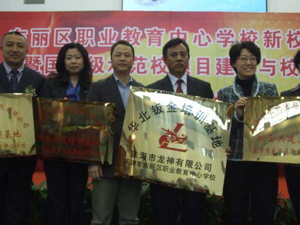 最后,我司蘇總為天津東麗區(qū)職業(yè)教育中心學校辦發(fā)“華東鈑金培訓基地”牌匾。