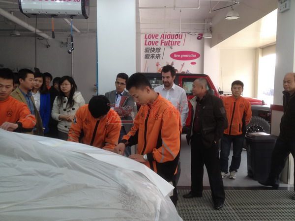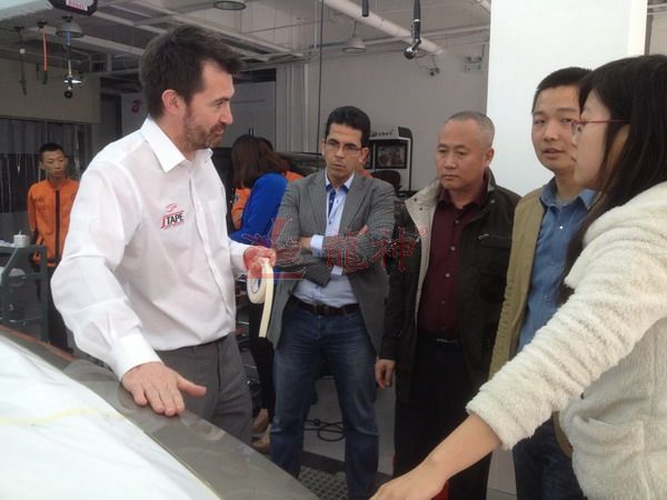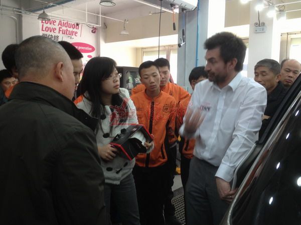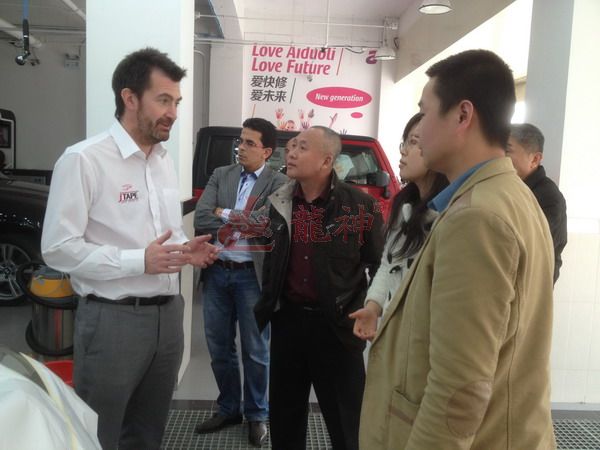 2013年特邀國外專家赴北京車爵士演示車縫泡膠條的使用 本司訊:2013年4月北京晴空萬里,龍神公司特邀英國專家一行五人,來到了北京車爵士進行汽車噴涂遮蔽技術交流。首先公司一行了解車爵士的汽車噴涂情況及詢問了使用的遮蔽工具情況。隨后英國專家針對在汽車噴漆時難噴涂的車門縫隙、玻璃死角等地方的專業遮蔽工具的演示。車縫泡沫膠:用于車身所有縫隙的遮蔽,有效隔離及遮蔽漆霧噴入車縫里。 2013-04-08 12209