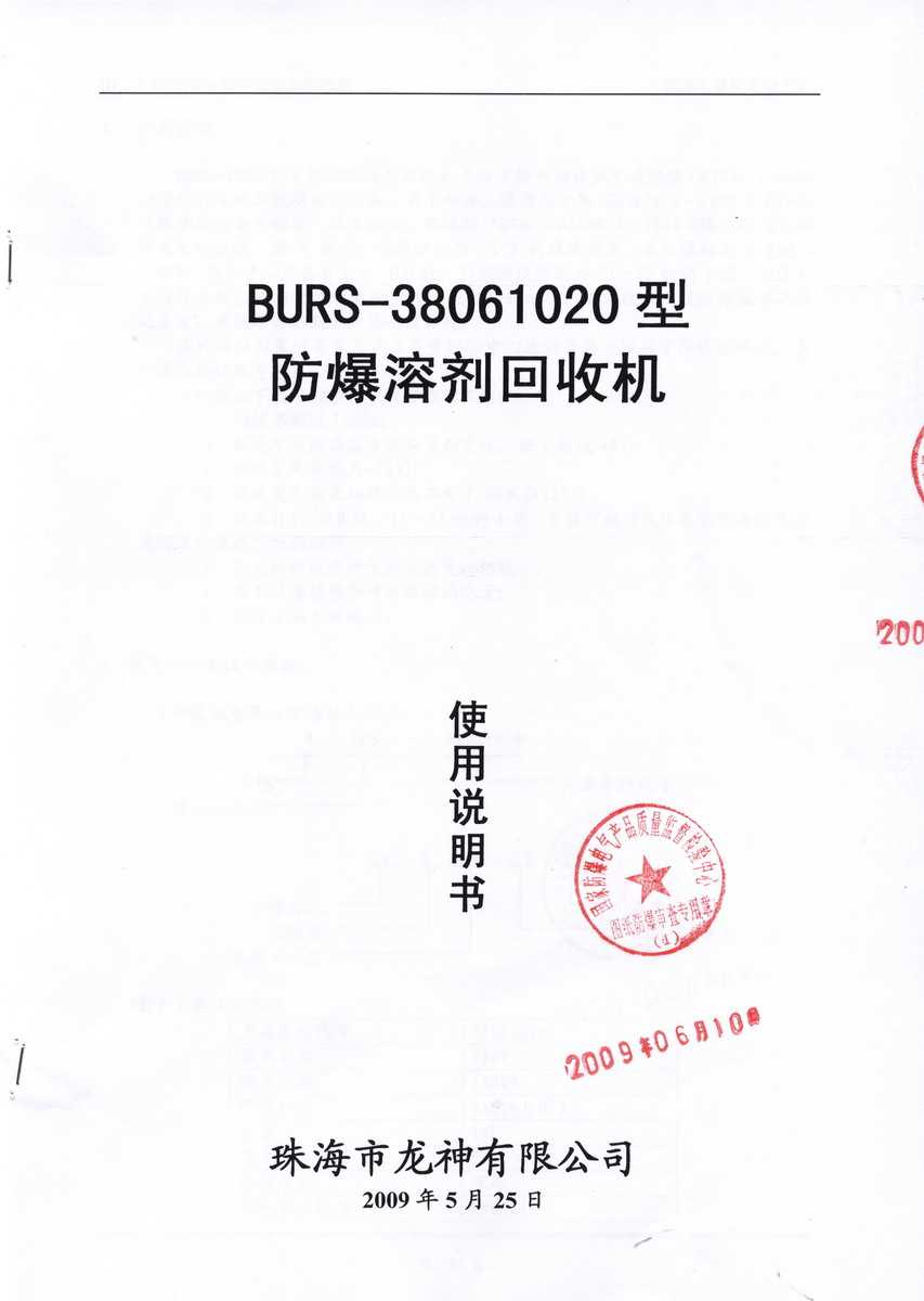防爆認證 防爆溶劑回收機防爆合格證 BURS系列防爆溶劑回收機技術條件 BURS-38061020型防爆溶劑回收機 使用說明書 BURS-38061020型防爆溶劑回收機 圖紙資料 (以上圖片均可點擊放大) 2012-11-27 35190