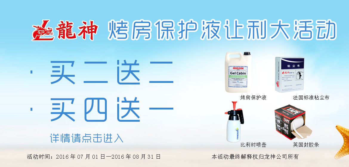 意大利烤房保護液讓利大活動 2016-06-24 11218 “熱夏、清涼、給力”意大利烤房保護液讓利大活動。買2罐,送法國“GekateX”標準粘塵布2盒;買4罐,送英國封膠條(1卷)或比利時噴壺(1個)。