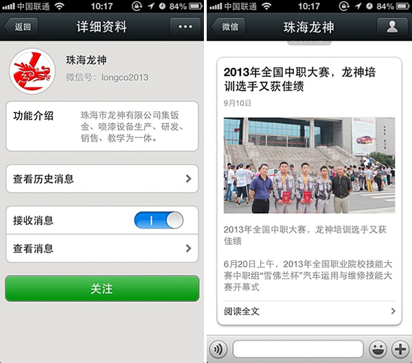 珠海龍神官方微信敬請關注! 珠海市龍神有限公司公共微信號已申請成功,請大家多多關注! 掃描二維碼,也可直接搜索公眾微信號“珠海龍神” 我們將不定期發布公司最新資訊。 您也可以發消息和我們進行互動。 查看歷史消息收看您錯過的動態新聞,讓您第一手掌握最新動態。 2013-09-18 16831